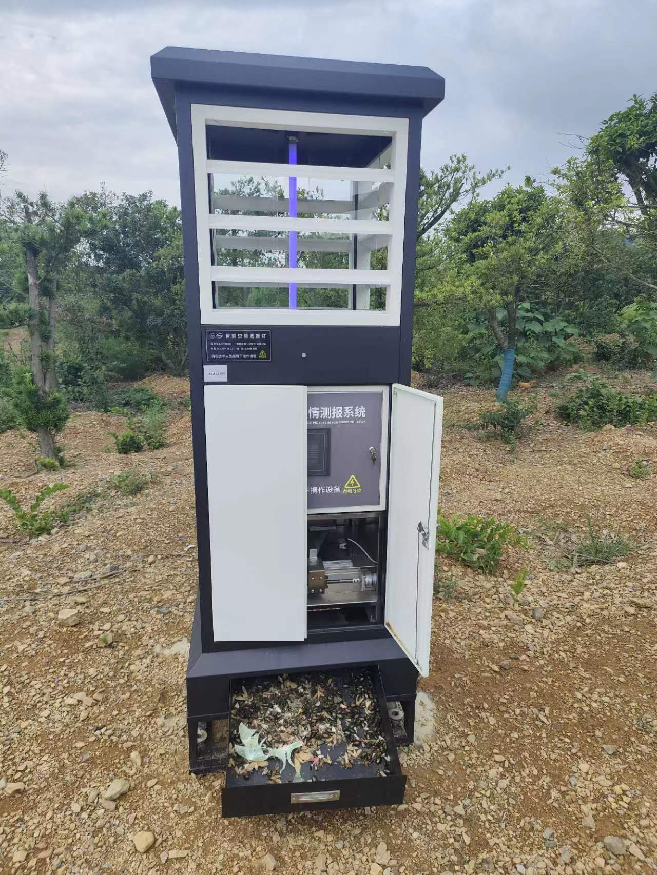 2、防止蟻害,及時清理:由于燈光誘蟲箱體內(nèi)和箱體周圍有大量昆蟲,引誘很多螞蟻覓食,長期會咬破收集袋或進(jìn)入袋取食昆蟲,螞蟻喜歡食取小型昆蟲,影響燈誘數(shù)據(jù)。有條件的可以在箱體四周做水槽防蟻,也可以在箱體內(nèi)外定期用衛(wèi)生殺蟲劑噴灑(菊酯類藥物)。并且1~2d清理1次箱體外內(nèi)殘蟲,帶出遠(yuǎn)離測報燈。