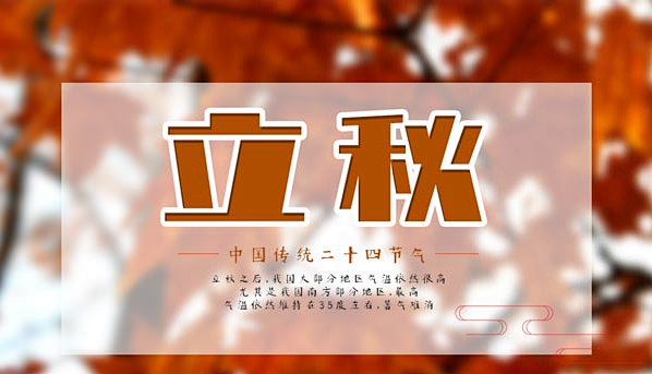 立秋,是農歷二十四節氣中的第13個節氣,更是秋天的**個節氣,標志著立秋時節的正式開始:“秋”就是指暑去涼來。到了立秋,梧桐樹開始落葉,因此有“落葉知秋”的成語。從文字角度來看,“秋”字由禾與火字組成,是禾谷成熟的意思。秋季是天氣由熱轉涼,再由涼轉寒的過渡性季節。起源于黃河流域,用于區分夏秋季節,是中國古代勞動人民長期經驗的積累和智慧的結晶。